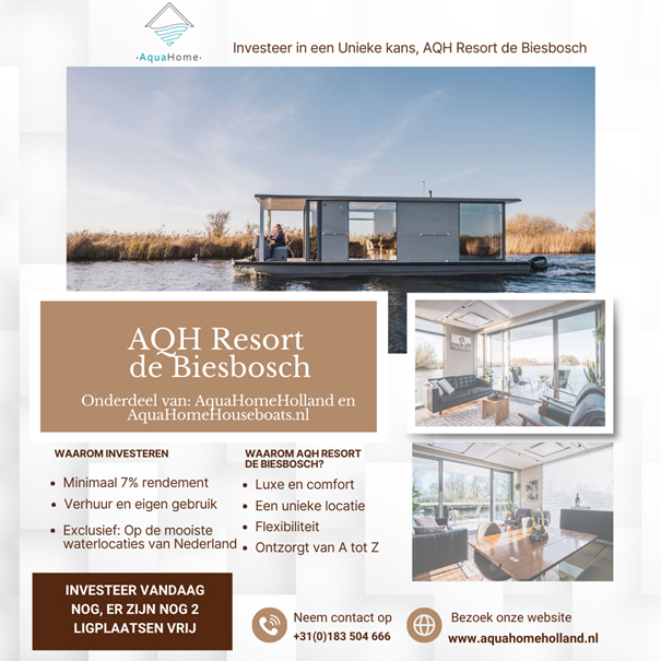 Investeer in een Unieke Kans in het AquaHome Resort de Biesbosch! Op AquaHome Resort de Biesbosch bieden wij u de unieke kans voor o.a. watersporters, investeerders en liefhebbers van het water. Wij bieden u de mogelijkheid om te investeren in een varende woning (Aquahomes). Er zijn nog enkele ligplaatsen beschikbaar, dus grijp snel deze kans […]