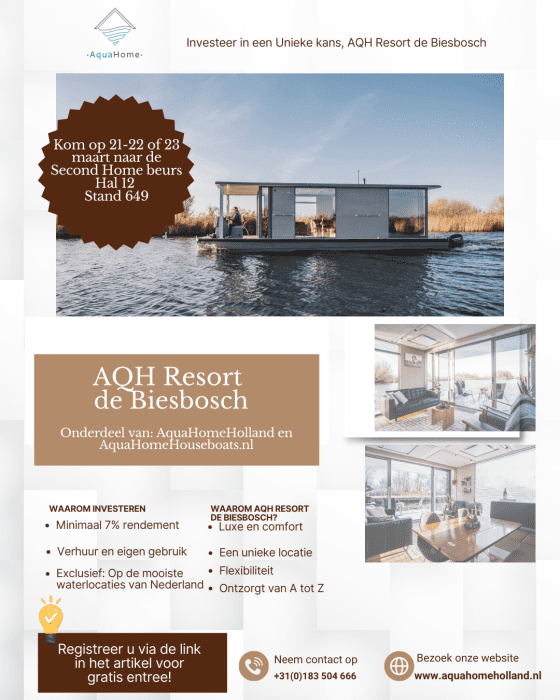 Droomt u van een tweede huis, maar wilt u iets écht unieks? Ontdek de ultieme vrijheid van een varende woning! In maart zijn wij aanwezig op de Second Home Beurs om u kennis te laten maken met een compleet nieuwe manier van wonen en ontspannen. Onze luxe varende woningen bieden niet alleen comfort en flexibiliteit, […]
